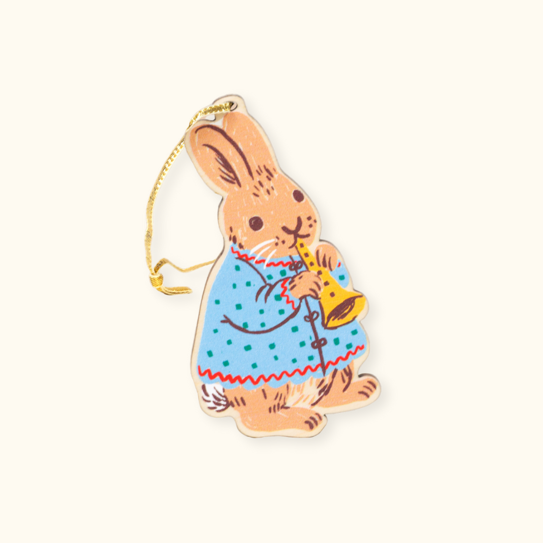 Bring some holiday cheer with the Phoebe Wahl ornament collection! This adorable bunny is ready to bring some music to the holiday festivities with his band of forest friends